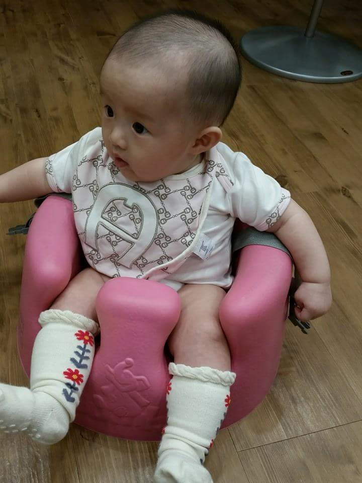 Chubby Little Foot during her first try of the Bumbo.