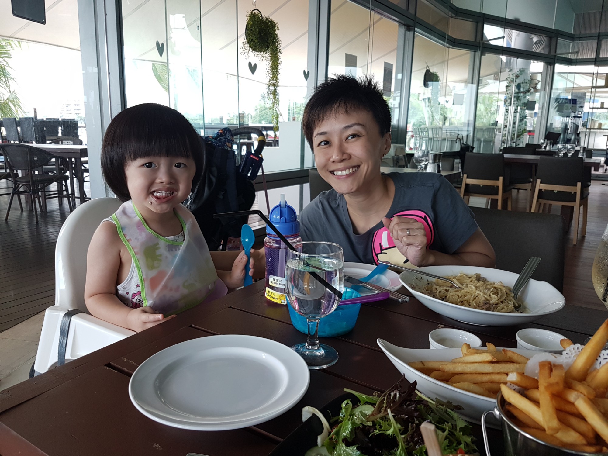 Dinner with Papa Long’s family for celebrations. Papa was very good – he fed Little Foot, sharing the seabass, mushroom soup and she got a milkshake too. Then a lot of running around by the Little toddler at the open space outside the restaurant and several rounds up and down a set of escalators until we had to conduct “Ops Extraction” and carried a meltdown toddler crying all the way to the car.